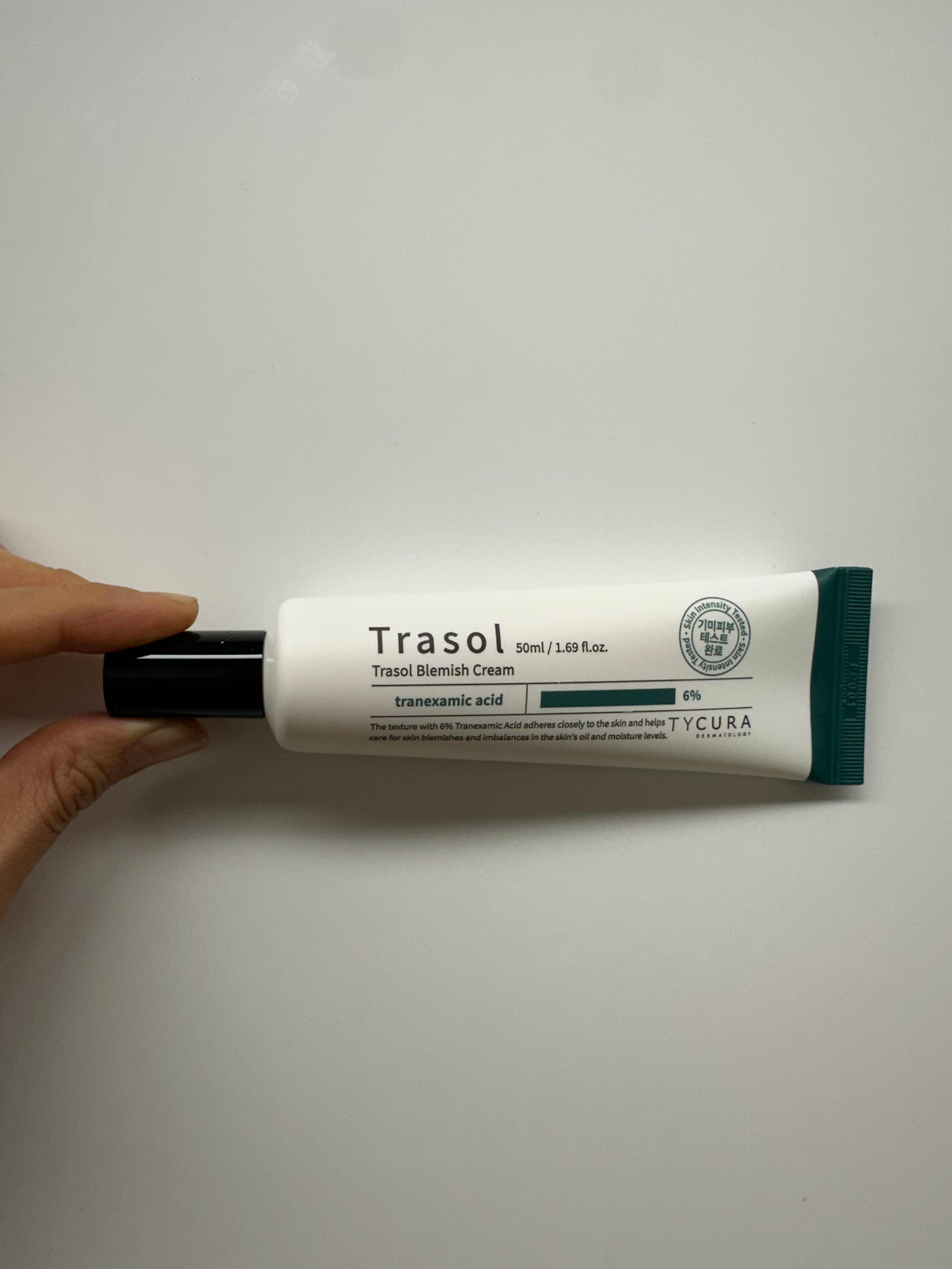 고함량 트라넥삼산 성분이 들어간 티큐라 트라솔 블레미쉬 기미크림이에요.